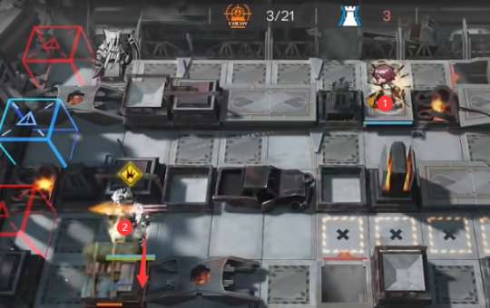 根据图示,在开始局面时将能天使向左部署,接着向下部署山。等到山击破了箱子后,再使用技能。