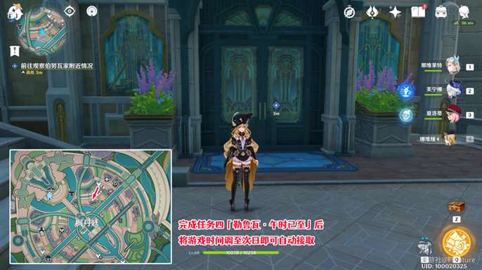完成任务三「勒鲁瓦·押解」后,将游戏时间调整至次日,即可自动接到世界任务「勒鲁瓦·午时已至」。在勒鲁瓦家门前与皮普对话即可开始任务。