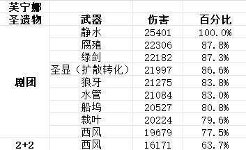 ▮芙宁娜:下面给出芙宁娜不同武器和圣遗物情况下的输出情况对比: