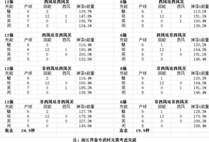 上述循环轴对应的充能需求如下: