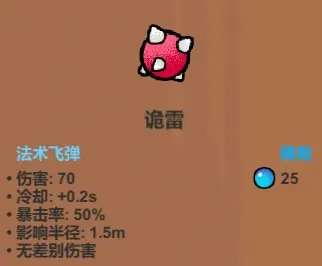 暴击流的大爹,也是自杀流的大爹。虽然会增加冷却,但高伤害,高暴击率,自带范围伤害,单论伤害能力属实优秀。问题是它弹道较短,命中也不那么容易,这也就导致了,在没有骑士头盔或者献祭匕首的前提下,怪比较远你不好命中,怪贴脸你又连着自己一起炸的尴尬。但搭配引线和自动导航,问题就解决了。只要不是贴脸打怪,你基本不会有炸到自己的可能。由于强力牵引的存在,诡雷也不需要增加影响半径就能有优秀的杀伤范围。只是玩诡雷就尽量不要玩召唤流了,尤其没引线的情况下,它很容易就会把你的召唤物炸飞。