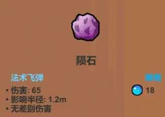 虽然也是无差别伤害,但安全性比诡雷高很多。由于它是从天上直接砸下来的定点伤害,指哪打哪,不受距离和障碍限制,所以你完全可以在很远的地方无脑砸陨石,甚至躲在安全的墙背面把怪全砸死。但跟诡雷一样,在没有骑士头盔或者献祭匕首的情况下,面对怪贴脸时它会变得非常无力,需要另外准备一根法杖或者别的方式去保护自己。升级后本身伤害提升不高,但能额外发射流星,看上去酷炫了很多,但比起视觉效果,实际上伤害提升也就正常水平。