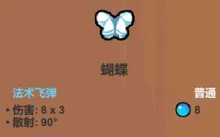 由于段数很多,很适合上毒,但由于毒没啥用,所以……蝴蝶的伤害能力其实还行,自带追踪,搭配闪电链理论上能打出很高伤害,但实际游戏中,由于蝴蝶速度慢,且会被子弹消灭,会撞墙自灭,会被无差别伤害消灭……所以真的很不好用。升级后也没有新的词条。暂时在我心中蝴蝶是最弱的两个输出法术之一,什么时候毒能加强什么时候它地位能得到提升。