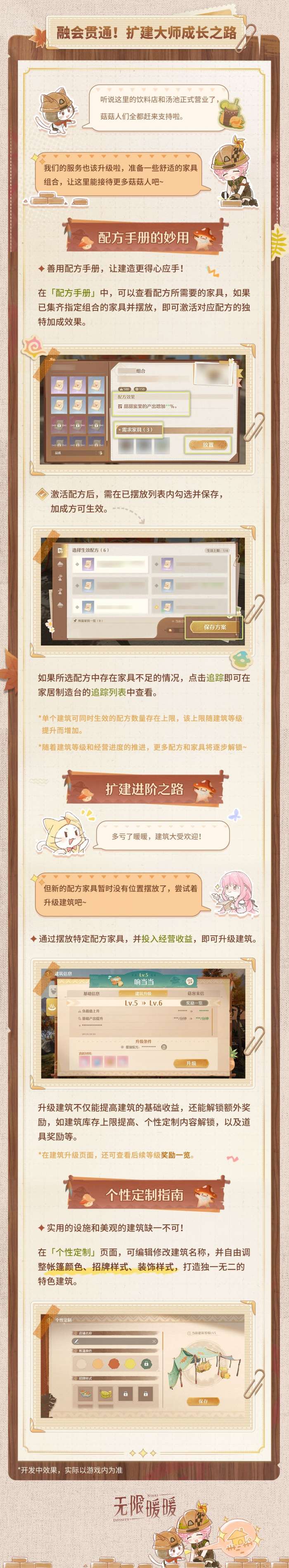 >>配置「伊赞蓝图·建造」能力后,可以点按【配方手册】按键,查看配方手册。不同的配方会有不同的效果,运用配方组合轻松经营,让梦想的蓝图落成身边的欢笑与友情。