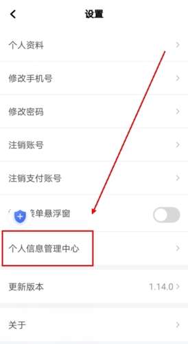 2、在设置界面里面往下拉,可以看到【个人信息管理中心】这一栏,继续点击;