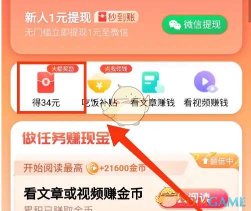 3、页面中的红包得金额处。