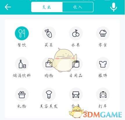 2、然后进入就是下面这样的界面,可以看到非常多的分类,然后选择好是【支出】还是【收入】,再将下面的分类选上;