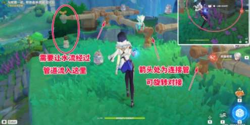 1、在谜题水管的边上有类似水桶的道具,可以让魔水流动,释放水流;