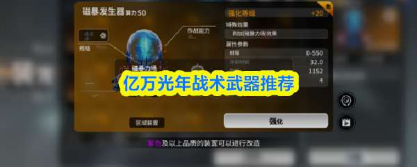 软件提交 专题合集 热门手游(三测先锋团实测)《亿万光年》战术武器推荐:【磁暴发生器】、【区域系统类】、【重定位空间折叠装置】、【大型特勤中队1型】、【高能战术核弹】、【主炮系列】、【光幕】及【战术机关枪】均表现优异,导弹战术暂不推荐。