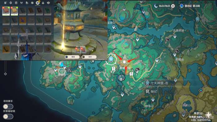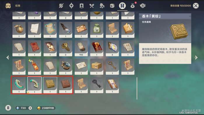 开始探索前先打开背包确认是否拥有:香木「黄琮」、香木「赤璋」、玉玦断片·右、玉玦断片·左