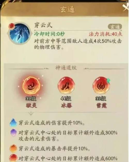 1、不大氪的玩家首先看自己玄通道纹(也就是第二行的技能),回天系列红色真炎,穿云系列狱炎,裂地崩系列用业火,这三个抽到哪个红色的就用哪个就行,神通跟法宝就以这个为中心进行搭配就行。