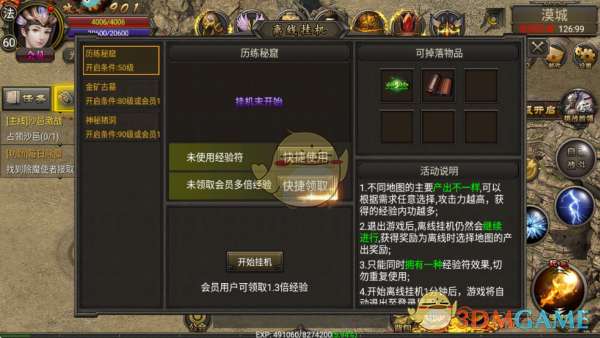 5、最后玩累了可以使用离线挂机,不在线也可以获得大量经验。