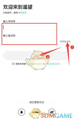 4、输入手机号,并输入获取的验证码,点击登录。