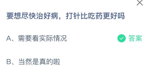 以上就是要想尽快治好病,打针比吃药更好吗,支付宝蚂蚁庄园2025年12月19日答案最新,更多精彩内容,请点击关注pk游戏网更新!