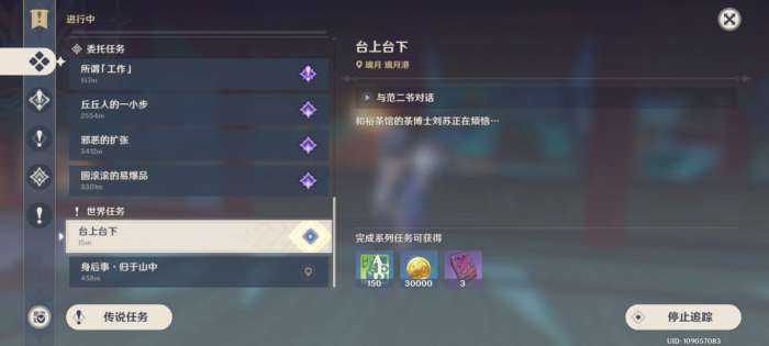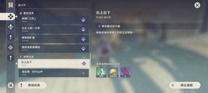 到达码头仓库找木板后返回和裕茶馆找到「大雨」。对话过剧情后任务结束,会获得一个尘歌壶的摆设图纸。