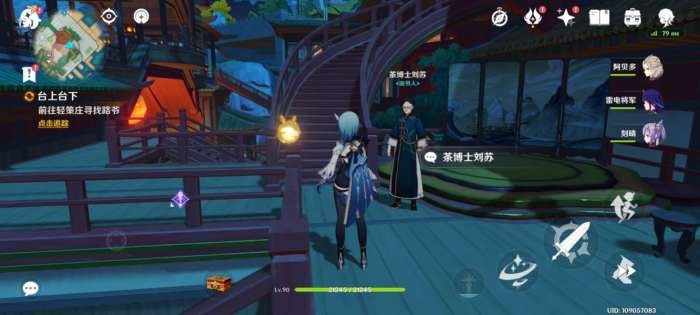 到达地点与「和裕茶馆」——茶博士刘苏对话,过剧情。对话后茶博士刘苏让前往轻策庄寻找「路爷」