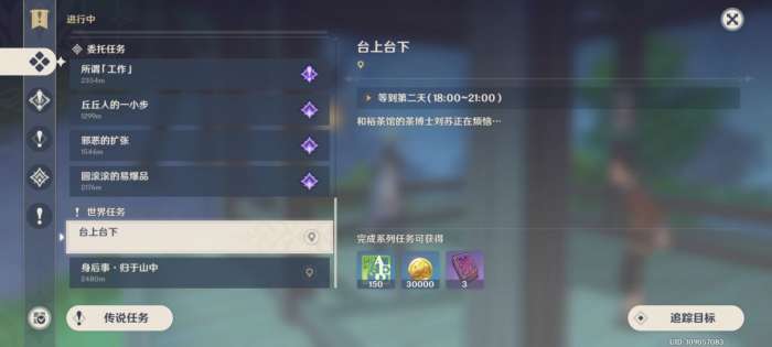提交物品后,任务让把游戏时间调整到第二天(18:00~21:00)点击主页派蒙调整游戏时间。