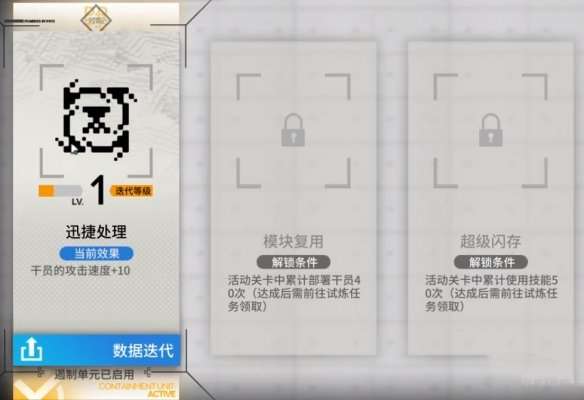 【遏制单元】迅捷处理 Lv.1:干员的攻击速度+10
