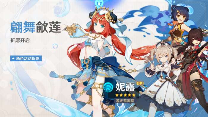 「翩舞歈莲」活动祈愿即将开启,「莲光落舞筵·妮露(水)」概率UP!