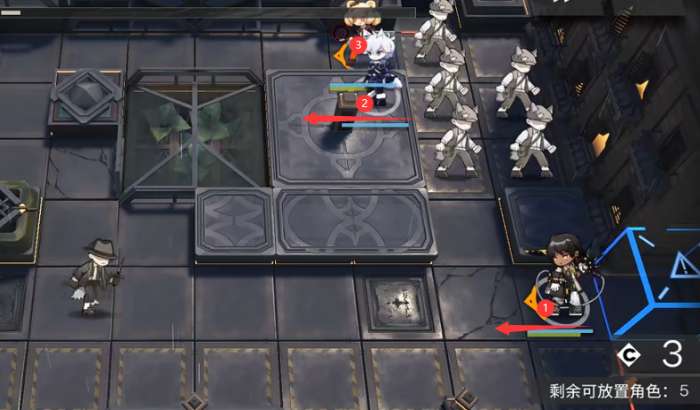 如下图所示位置部署棘刺(向左) → 史都华德(向左)→ 古米。