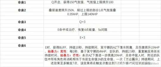 命座是角色的重要属性之一。1命座能够保底150层,提高角色的增伤效果。2命座则主要提高角色自身的输出,对增伤的影响较小。四命座能够解放沙漏主词条,提升角色的属性。六命座则给玩家更多的选择,选择荒性能够让角色单人承担队伍生存的角色,同时还能集后台输出、全队增伤和全队生存为一体的六边形战士。而选择芒性则能够进行对单爆破输出,扮演几秒钟的主C角色。