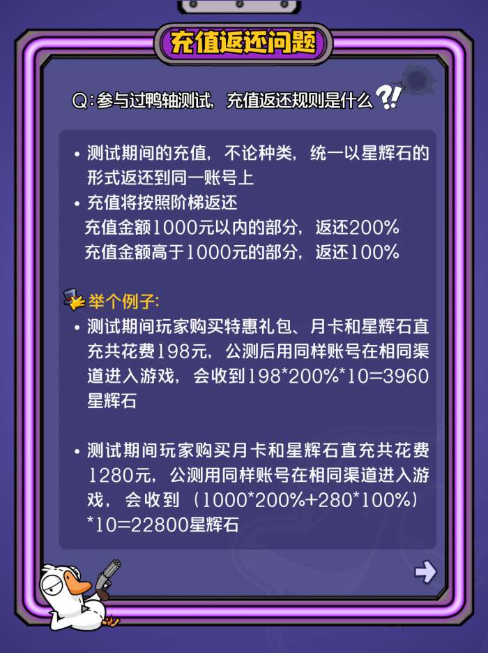 Q:参与过鸭轴测试,充值返还规则是什么?