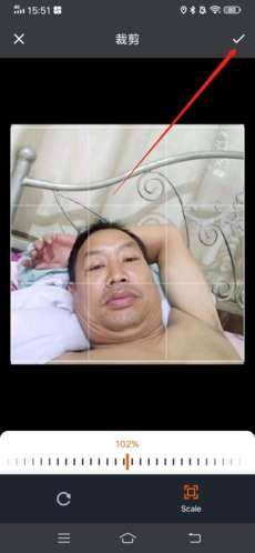 3、如何在相册中选择合适的图片,裁剪到合适的大小后点击右上角“√”;