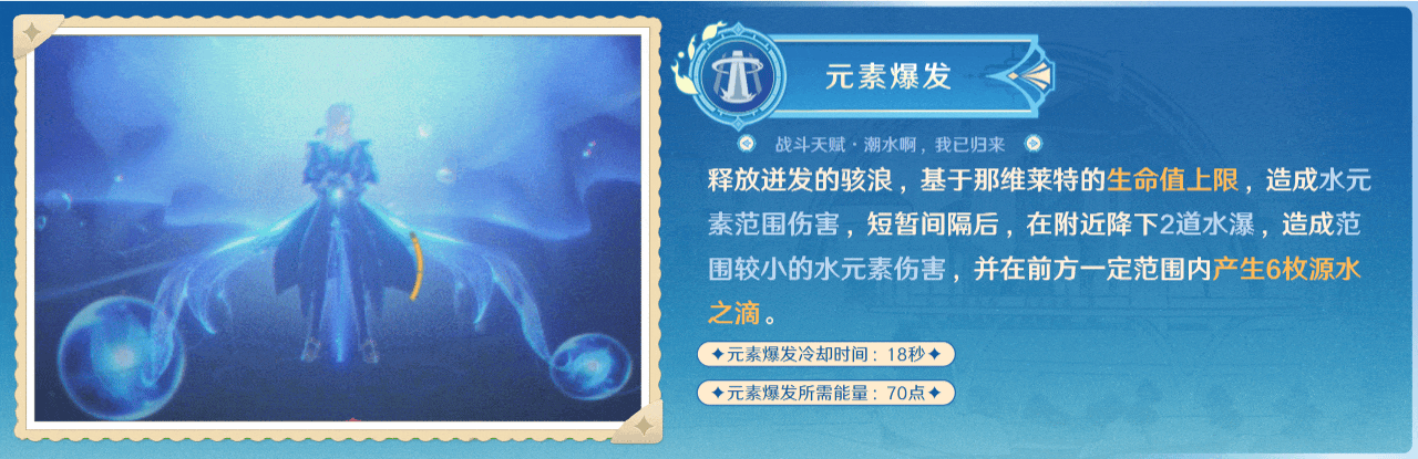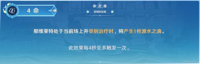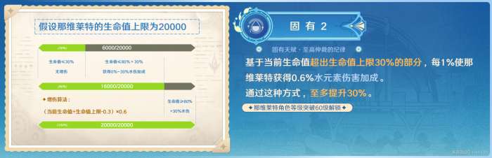 ·那维莱特的当前生命值≥80%时,可以获得最高30%的水元素伤害加成;