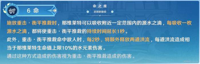 在6命和4命的加持下,最终形态的重击可以持续保持11秒以上,并且4命至少可以触发2次,额外产生2个水滴。