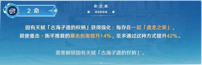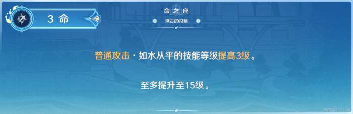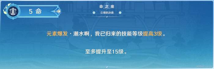 Q的天赋等级直接提高3级。节约资源,快速养成的命座,对于Q的伤害上限得到提升。