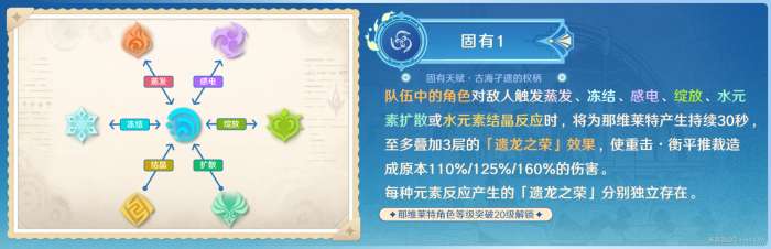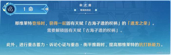 固有1提供的"遗龙之荣"效果直接与那维莱特的伤害相关联,并且对他的阵容搭配有直接性的影响。