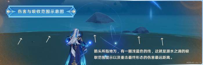 根据上图所示,只需在浅蓝色区域内发现水滴,系统就会自动吸收它们。同时,在进行最终形态重击时,不需要长按且不会取消最终形态的释放。如果需要取消,可以通过跳跃或冲刺来实现,但通常不建议这样做。