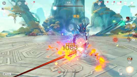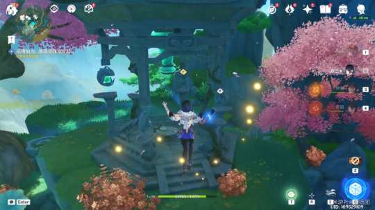 一路来到仙山顶部,浮锦施法时我们需要清理周围的丘丘人