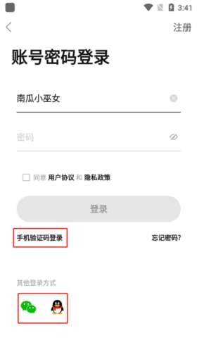 4、其他方式登录的话可以直接使用账号密码,手机验证码,还有qq登录进行登录。