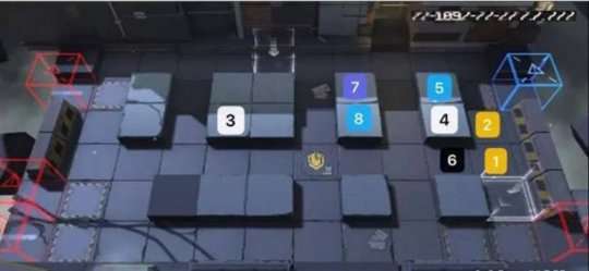 下一步,我们需要等待费用,然后在位置7下方部署一个单体术师,在位置8右侧部署一个群体医疗能力单位。接着,在位置1处部署一个生存能力最高的重装单位。