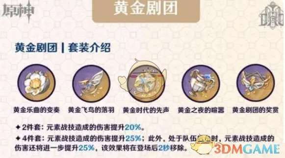2、四件套:元素战技造成的伤害提升25%;此外,处于队伍后台时,元素战技造成的伤害还将进一步提升25%,该效果将在登场后2秒移除。