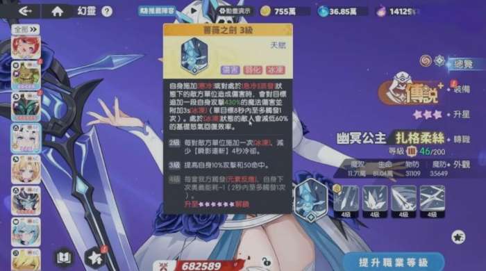 要说幽冥公主的天赋技能是冰系当中的核心所在,他在施展的时候往往会让整个团队的控场强度达到更高。一旦幽冥公主施加了寒冷,或者是敌人处于急冷、蒸发等等状态的时候。此时它可以有效地加一段自身攻击的魔法伤害,额外还会带4秒的冰冻,这时候单个目标8秒以内就能够直接触发一次,此时敌人直接被冰冻,基础的怒气回复效率也将会有效地降低。
