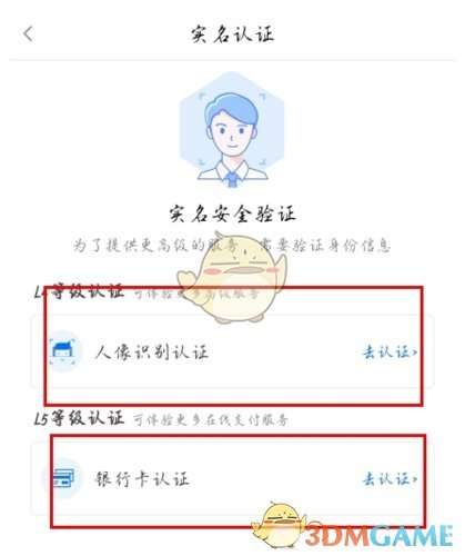 2、然后就可以根据自己的情况选择【人像识别认证】和【银行卡认证】这两个选择了,跟着系统完成就可以了。