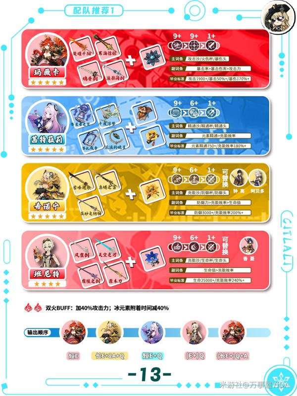 等级天赋升级•圣遗物推荐•武器推荐•配队推荐•天赋技能解析