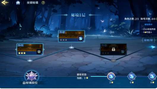 坐骑的养成也是比较关键的,核心的材料主要是通过钻石购买或者坐骑秘境。坐骑秘境的玩法和爬塔比较相似,角色每天都会有三次获奖的机会,账号累计9次。在满星通关当前楼层之后,马上就可以解锁下一层的挑战。当通关秘境第5层之后,就可以解锁段位系统,还有无线模式。每日会根据玩家段位去发放一些丰厚的养成材料,可以给解锁技能,还有坐骑升星,去提供稳定的支撑。建议优先参与每日秘境挑战,积累的材料快速提升烈焰麒麟的等级,很快就能解锁核心的被动技能。