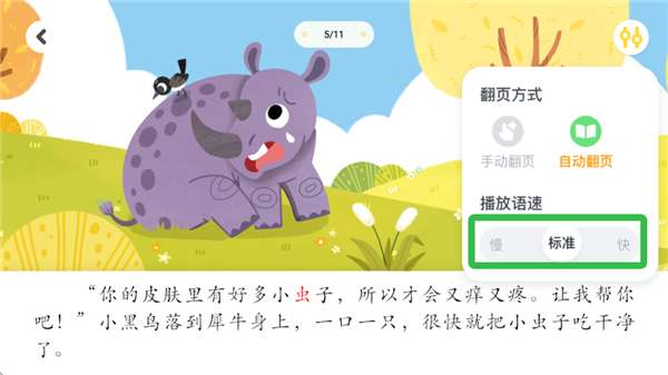 2、用户可根据孩子阅读速度设置播放速度。