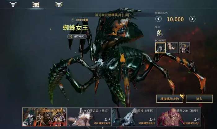 在副本的终极boss中,玩家会遇到名叫蜘蛛女王的boss,这个角色就是一只异形的大蜘蛛,整体的战斗能力是非常强的,玩家可以和这个boss进行一场高难度的对抗,弱点是近战,远程输出的话,会被这boss的触脚所攻击,想要顺利击败这些boss的玩家就需要选择比较强力的职业,假如比较喜欢近距离输出的话,那就可以选择全套或者大剑这样的职业,这种近距离的输出能让玩家给对手带来更多的伤害,可以在战斗的过程中精准输出,但很多玩家个人的能力是不足的,这时候就可以尝试一下远程输出类型的弓箭职业,能够在相对较远的地方展开射击,近战输出和远程的辅助输出搭配,更能歼灭boss。