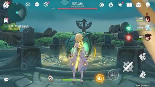 然后吹散最大的一个晶球(吹这个之前记得把队伍换成战斗队伍,最好别有风元素角色!因为狂风之核风元素免疫!)