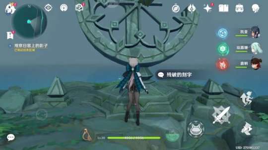 打开元素视野,发现日晷旁边有四个青色晶球,都用风元素吹散