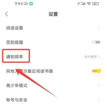 进入到速读免费小说app设置页面,点击【通知频率】。