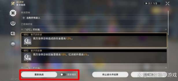 然后点开「重新挑战」旁边的「重新编队」后,再点击「重新挑战」就可以切换配队角色了