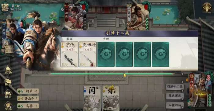 三技能【入报河伯】为限定技:可将当前场上所有角色手牌、装备区及弃牌堆中的黑桃牌全部洗回牌堆。该技能并非单纯清空,而是与【引漳十二渠】形成闭环配合——前期主动分发黑桃牌至对手手中,后期通过限定技回收,既削弱敌方黑桃资源稳定性,又保障己方后续黑桃供给,强化技能链可持续性。