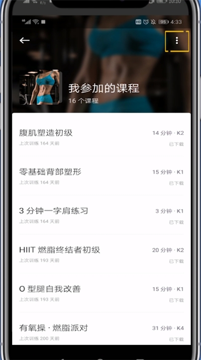 打开keep,点击右下角的我 ,点击我的课程,再点击我参加的课程,然后找到右上角的菜单栏,点击进入。