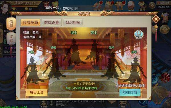 看起来好复杂的样子,不过实际上很简单,攻城战开启之后点击前往攻城。