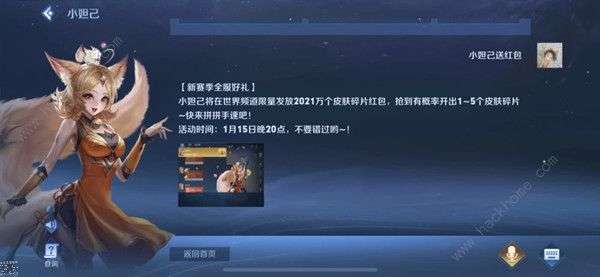 新赛季好礼,全服限量发放500万个皮肤碎片红包,抢到有概率开出1~5个皮肤碎片~快来拼拼手速吧!